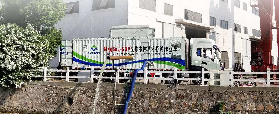 我司還擁有一款基于超磁分離技術(shù)的車載式一體化凈水系統(tǒng)--MagSep-SOV應(yīng)急水體凈化特種作業(yè)車,此款作業(yè)車擁有獨(dú)立自主的專利技術(shù)及知識產(chǎn)權(quán),整體技術(shù)處于國內(nèi)優(yōu)秀水平。MagSep-SOV應(yīng)急水體凈化特種作業(yè)車具有高機(jī)動性、靈活性、無間歇連續(xù)式運(yùn)行、處理通量大、凈化效率高、應(yīng)用范圍廣泛、不受地形影響等多方位優(yōu)勢,應(yīng)急性強(qiáng),可應(yīng)對多場景水污染處置需求。對雨季溢流污染可以快速、高效地凈化受污染水體,從而減輕雨季溢流污染對環(huán)境的影響。該特種作業(yè)車兼具行走系統(tǒng)、取水系統(tǒng)、排水系統(tǒng)、照明系統(tǒng)、發(fā)電系統(tǒng)、水處理系統(tǒng)及污泥處置系統(tǒng)等七大功能,能夠快速機(jī)動地完成水污染防治等工作。尤其是在暴雨初期,由于初始沖刷現(xiàn)象,污染程度往往會加劇,而應(yīng)急水體凈化特種作業(yè)車能夠迅速介入,有效減輕環(huán)境污染,保護(hù)水資源,為水污染治理和防治提供高效靈活的應(yīng)對模式。