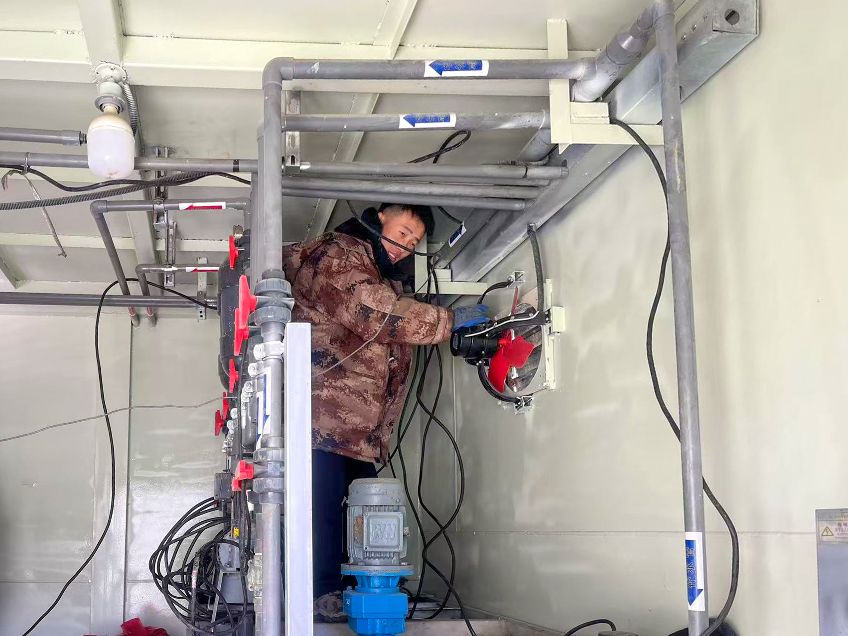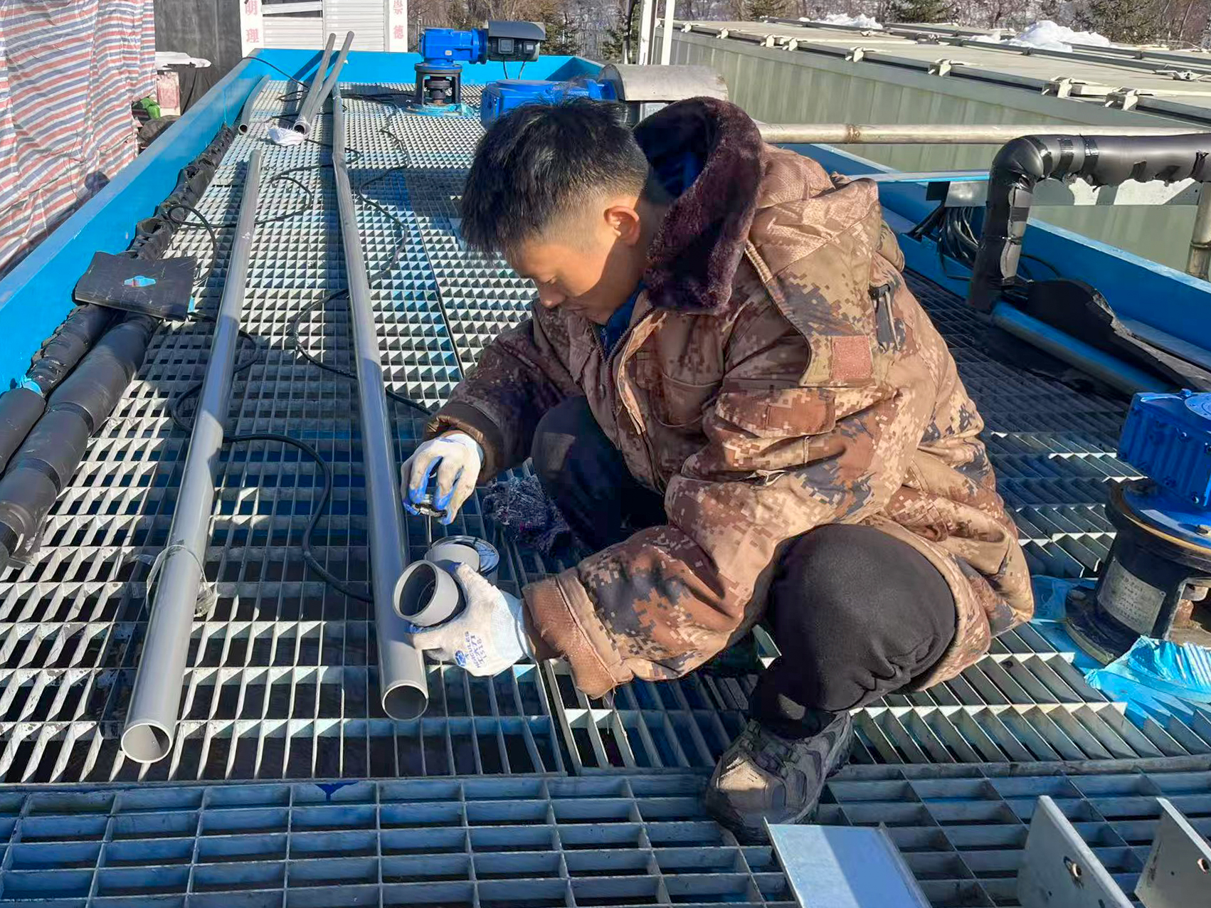 春節(jié)期間施工團(tuán)隊(duì)倉(cāng)促完成設(shè)備安裝后撤離,現(xiàn)場(chǎng)僅留兩名調(diào)試人員承擔(dān)全系統(tǒng)運(yùn)維工作。面對(duì)未完善的自控系統(tǒng),制藥配比、水位調(diào)節(jié)、污泥排放等多項(xiàng)操作均需人工頻繁干預(yù)。同時(shí)還需應(yīng)對(duì)管路凍損等突發(fā)故障,每日持續(xù)14小時(shí)以上的高強(qiáng)度作業(yè)成為常態(tài),工作效率受到嚴(yán)重制約。